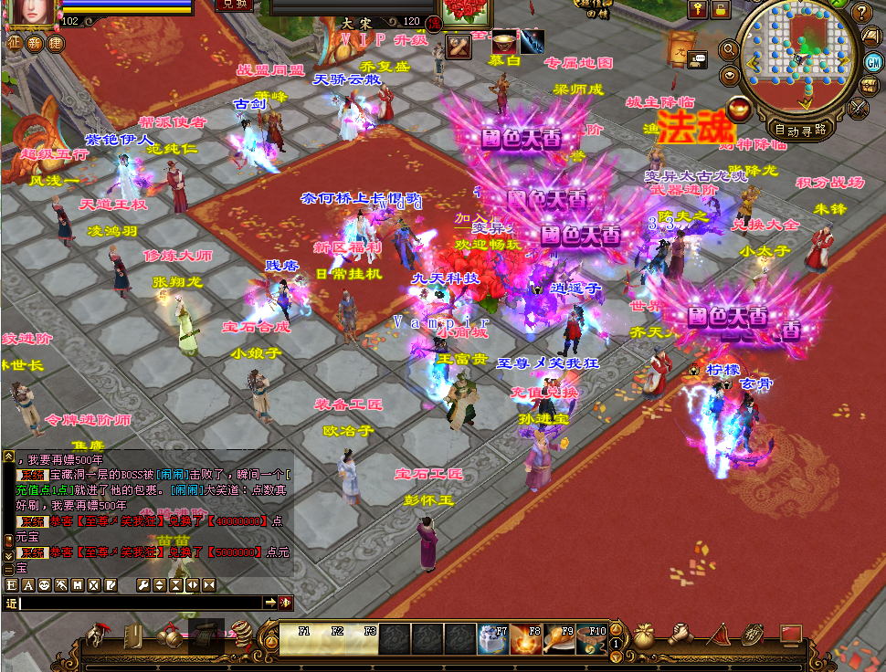 【BOSS大乱斗(1个地图】:满屏BOSS,整点40分刷新一次,单人掉落,(10元RMB点,根骨丹,功力丹,九天玉碎,轮回珠,轮回珠礼包,灵魂晶石)
